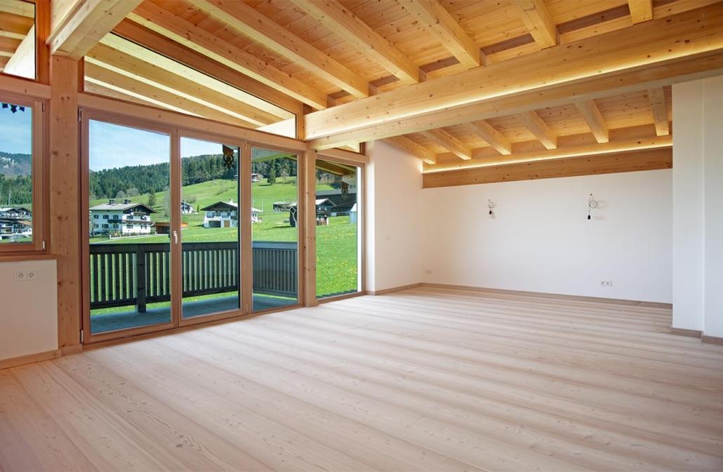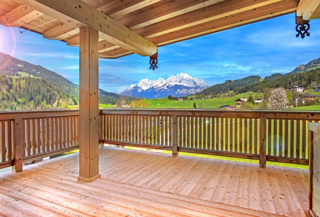 Vom 2. Obergeschoß hat man einen wundervollen Blick auf den Wilden Kaiser.